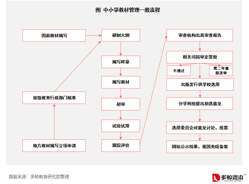 由于教材出版和发行的苛刻资质要求,现有的教材一般都是由国有出版社和省市级出版社延伸到上游编写。