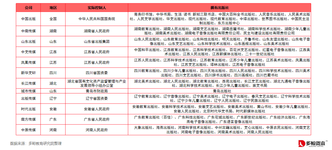 由于存在政策性壁垒,只有拥有书号资源的出版社可以进行教材教辅出版工作,而出版社均为国有资本,大部分归属于国家级和省市级出版集团。国家级和省市级出版集团控制 K12 教材教辅出版行业,民营企业与出版社合作参与教材教辅图书的出版。