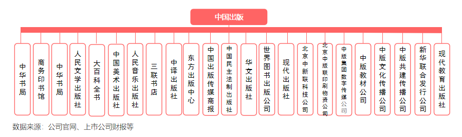 中游国家和省级教材教辅出版社拥有出版权力,民营公司要与出版社合作才能取得书号,出版发行教辅。国家和省级出版社向上下游延伸,大部分都发展成为全产业链集团。
