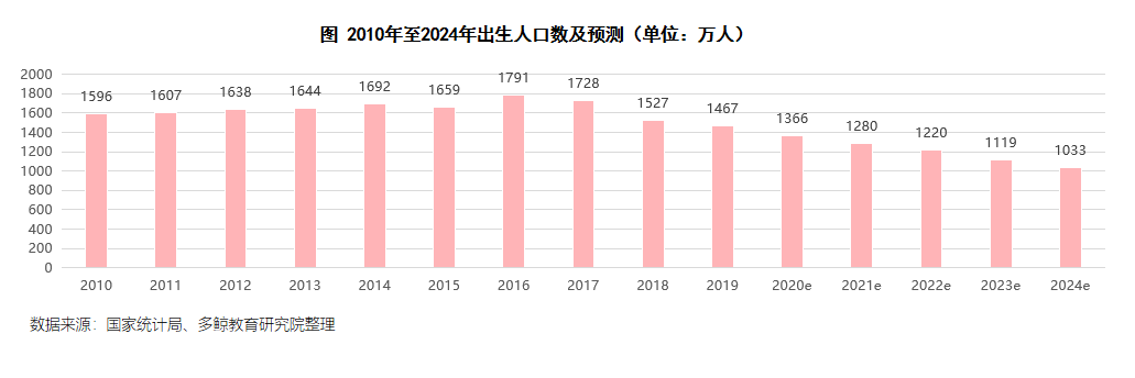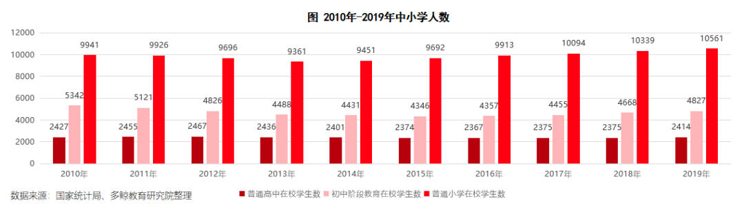 总体而言,目前国内小学、初中、高中在校生数量正在不断增加,根据教育部数据显示,近四年学龄儿童入学率都在 99.9% 以上,目前已经处在很高的水平,未来在校生数量将会由出生人口数量决定将由新生人口数量决定。