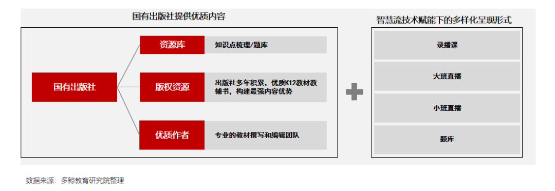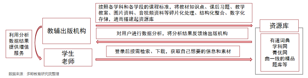 鉴于数字出版的发展,纸质教材教辅出版陷入瓶颈,大量教材教辅出版集团与互联网企业合作,建立自己的线上教材教辅服务平台。