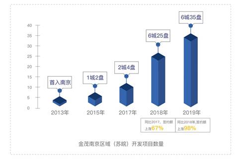 对此,中国金茂作为以“释放城市未来生命力”为己任的城市运营商,早就先行布局。2013年中国金茂首入南京,从2013年的1城2盘到2016年2城4盘,是金茂在发展中不断蛰伏积累的过程,在这个阶段,金茂南京始终静心调研,深入这方土地;2018年拓疆至6城25盘,以无可阻挡的热销之势沸腾长三角,是速度与规模的厚积薄发!到2019年底,金茂南京区域(苏皖)发展到6城35盘,是战略进入第二阶段——城市深耕的结果。飞速的发展轨迹印证了金茂南京的战略布局和品牌实力,刷新了运营城市新高度的实力。