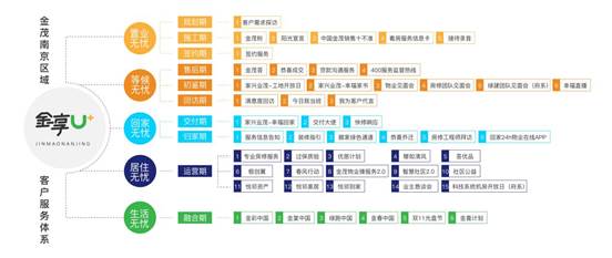 金享U+客户服务体系,是基于金茂南京区域(苏皖)城市深耕战略的一次升级,覆盖“客户成为金茂业主”全生命周期的服务内容,其所倡导的用户思维,即感同身受、设身处地地考虑用户的行为生活模式。设计者自身也是使用者,将自己放于用户的角色中,发掘用户的关注点,金茂南京区域(苏皖)从客户接触置业到等候、回家、居住、生活,以人本、健康、活力、共生的服务理念,打造5大生活维度,10大关键节点,50项标准服务。