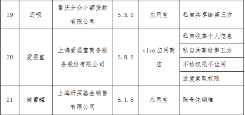 工信部通报的内容显示,“爱婴室APP(版本5.8.5;版本来源:vivo应用商店)存在私自收集个人信息、私自共享给第三方、不给权限不让用、过度索取权限问题。