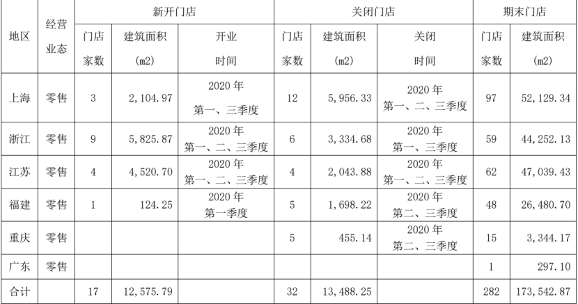 从今年爱婴室披露的三季度财报来看,2020年前三季度,爱婴室全国共新开门店17家,关闭门店32家,目前在全国共有282门店。
