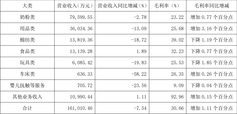 从公司营结构上来看,爱婴室主要为孕前-6岁婴幼儿家庭提供母婴产品以及相关服务,主要经营产品涵盖包括婴幼儿奶制品、纸尿裤、喂哺用品、玩具、婴童服装、洗护用品、孕产妇用品等几十大类,但公司主要的收入来源还是来自于奶粉业务。