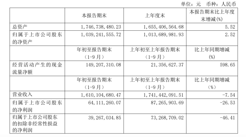10月22日,爱婴室披露第三季度业绩报告,报告显示,今年前三季度爱婴室营业收入16.1亿元,同比下降7.54%;归属于上市公司股东净利润约为3926.7万元,同比下降46.41%。