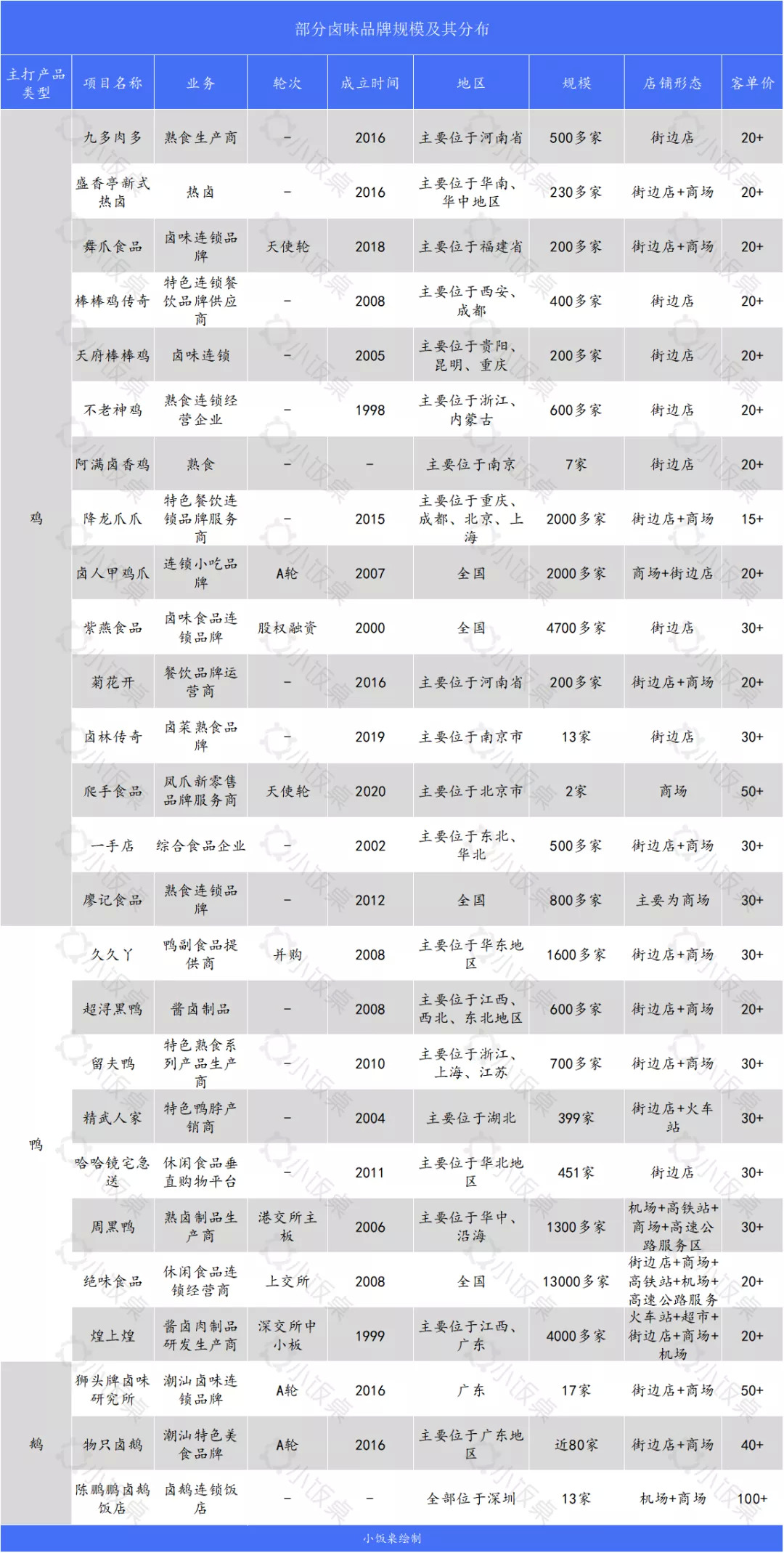 (小饭桌绘制了部分卤味品牌信息,数据来源于餐眼、企名片等,欢迎大家来留言区补充)