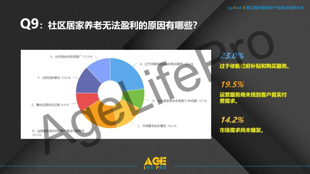 @9、战略方向和业务选择至关重要,社区居家盈利艰难:回看中国养老过去十年的发展历程,我们看到,战略方向和业务选择至关重要,十年前选择社区居家养老的企业很多都已经消失,即使有些活到今天,相对于机构,也依然艰难,市场化盈利更是迟迟无法突围,在迎接下一个十年的起点,所有养老企业、创业者、投资机构,都应该做一次新的战略和业务选择。