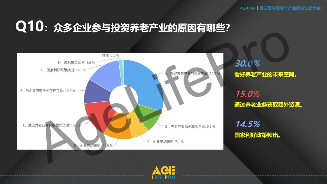 @2、整体缺乏创新,思维陷入“三驾马车”:如调研结果所呈现的一样,过去十年,养老机构、社区居家、CCRC构成了养老产业的“三驾马车”,几乎所有的企业、资本都沉迷于此,行业整体缺乏创新思维,未来需要有所改变。