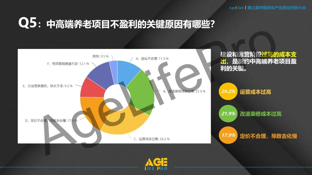 可以看到,建设和运营阶段过高的成本支出是制约中高端养老项目盈利的关键,而过高的成本,也并没有带来相对应的溢价空间,最终导致了定价完全脱离市场需求,去化速度慢,亏损累积的恶性循环。