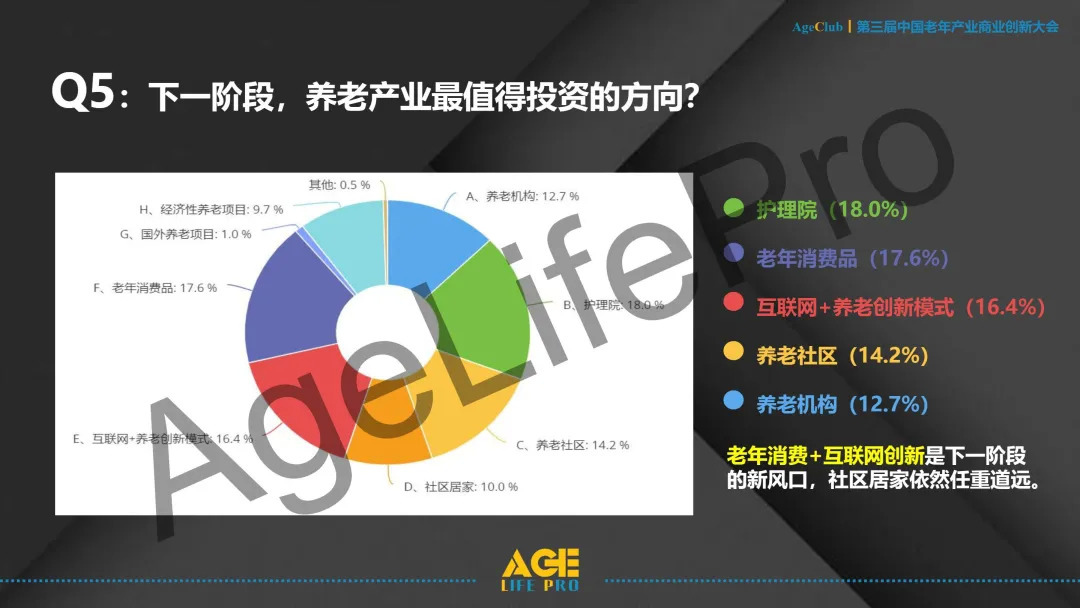值得注意的是:社区居家虽然被从业者认为是下一阶段的商业机会和政策发力方向,却并不在值得投资方向的前5中,可见社区居家依然是个“矛盾体”。