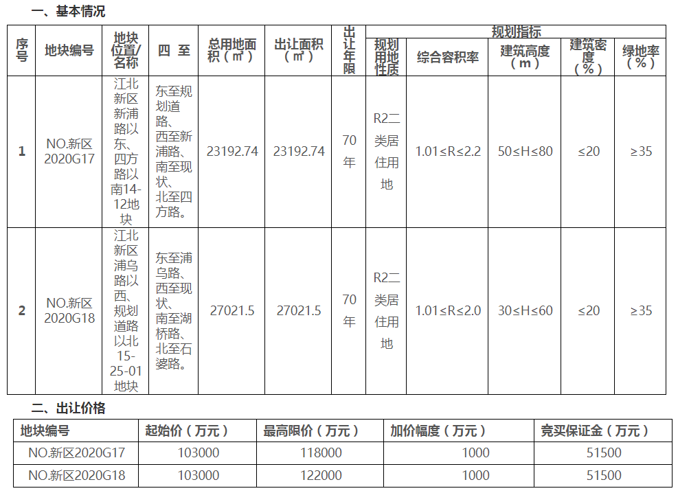 新区G17地块,起始楼面价20187元/㎡;最高限价11.8亿,最高限价楼面价23126元/㎡;毛坯房销售限价31500元/㎡。