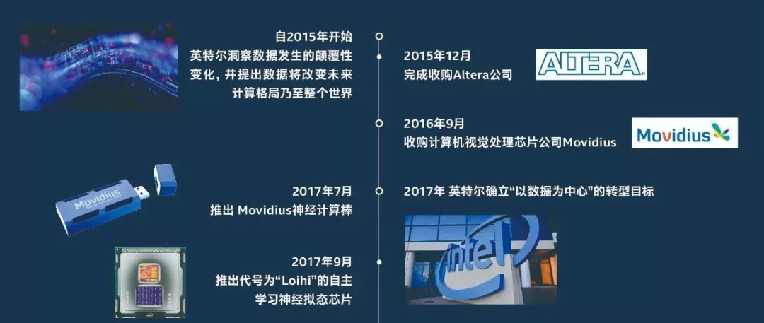 在没有赶上早班车的人工智能领域,英特尔也试图通过买买买来缩短与对手的差距,先后在2016年收购了初创企业Nervana和硅谷计算机视觉领域的初创公司Movidius。为布局自动驾驶,其在2017年收购了新创自动驾驶公司Mobileye,接着在2018年又收购了开发人工智能模型组件的初创企业Vertex.ai。