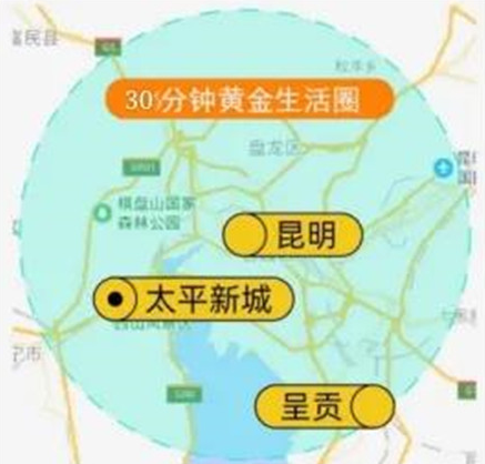 太平新城位于安宁老城与昆明主城之间,直线距离安宁老城12公里,直线距离昆明主城16公里,是连接安宁老城与昆明主城的重要枢纽,成为兼具了生态宜居与城市发展的双重利好的关键节点。