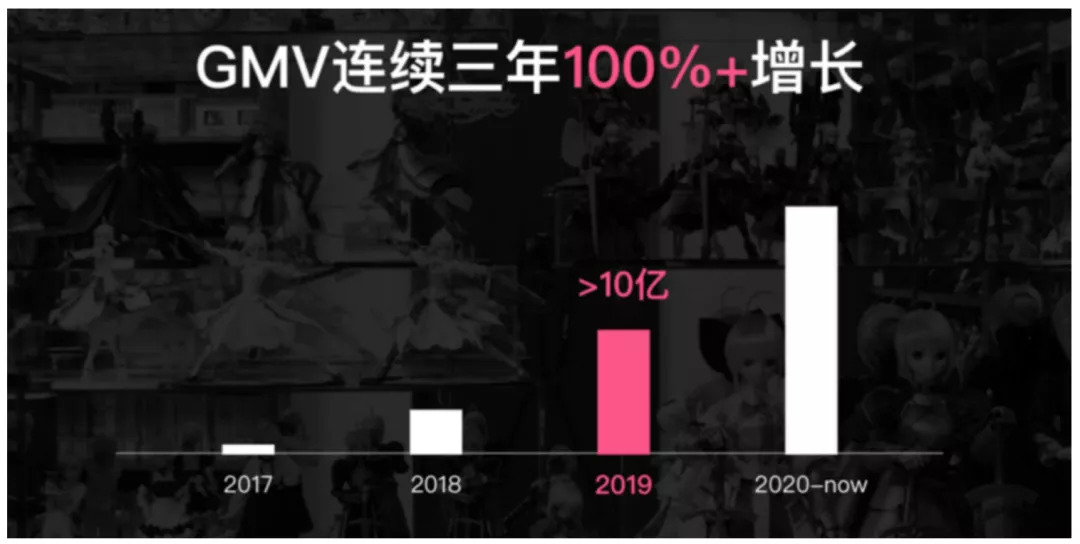 bilibili电商平台,又称“会员购”,主要聚焦ACG衍生品销售。2017年11月会员购上线,GMV(网站成交金额)连续三年超100%增长,且在2019年超过了10亿元人民币。王欣磊在演讲中透露,在疫情影响下的2020年,B站会员购10个月内的成交金额已远超2019年。