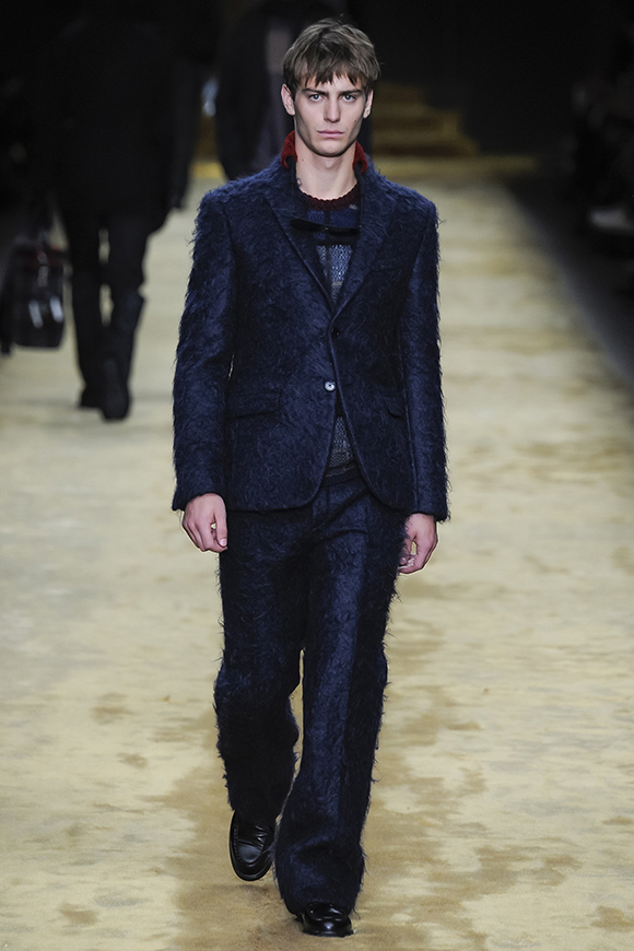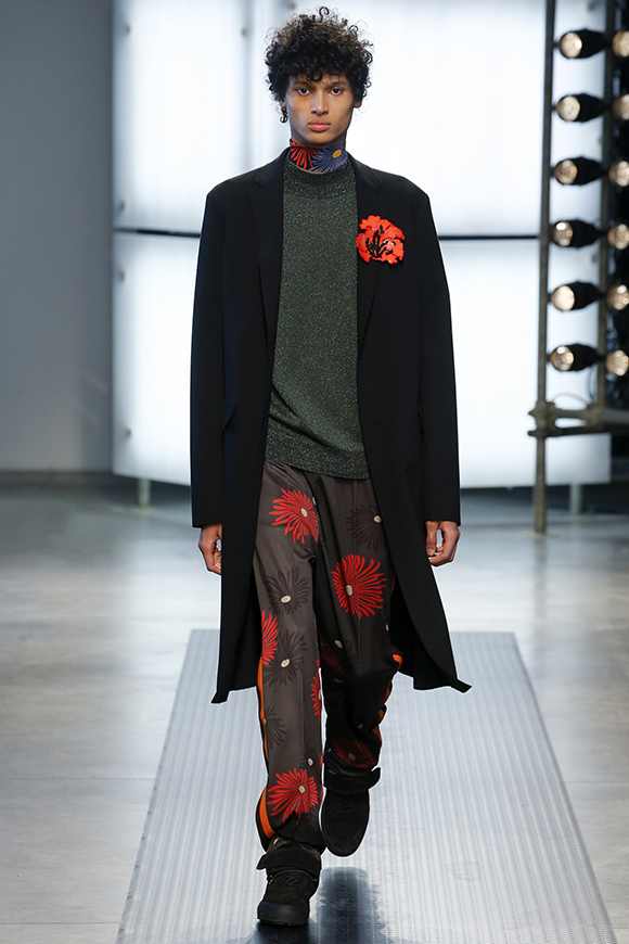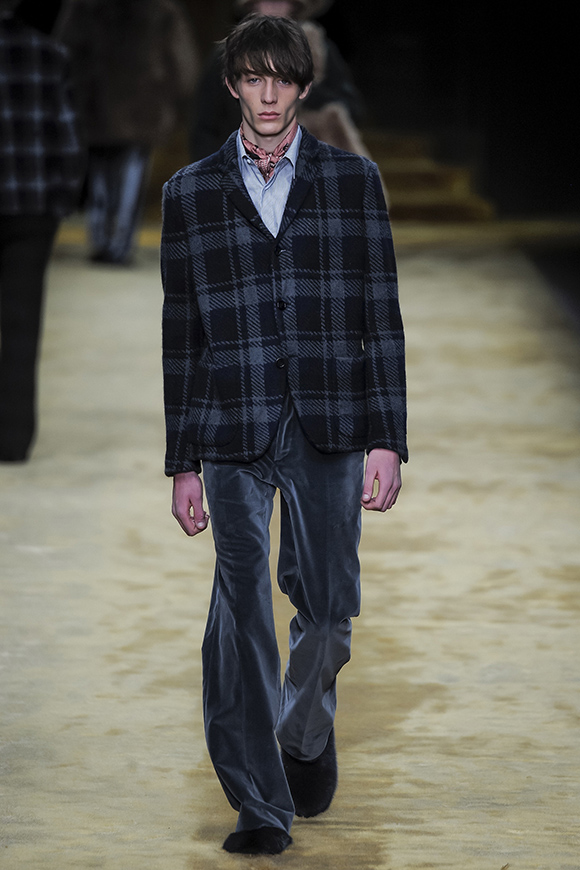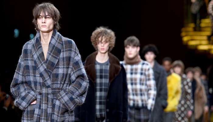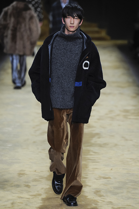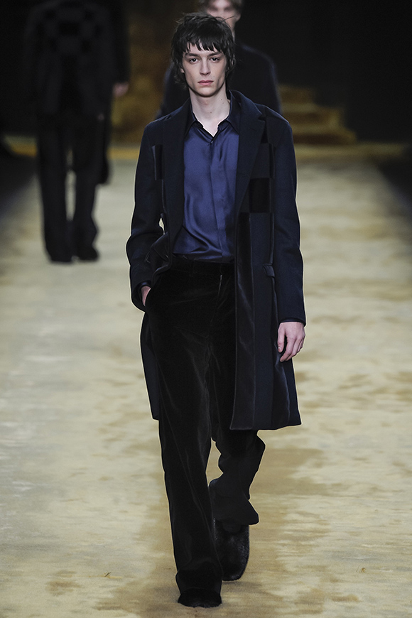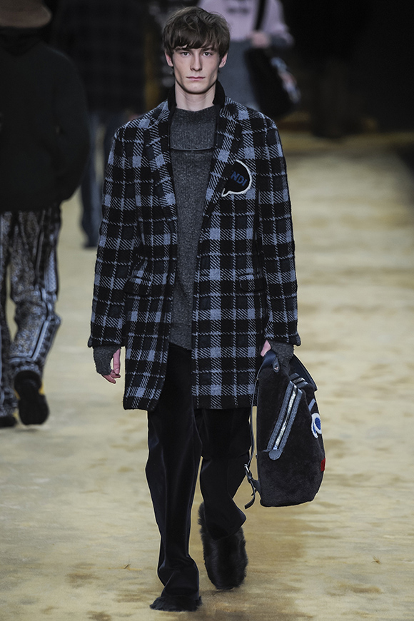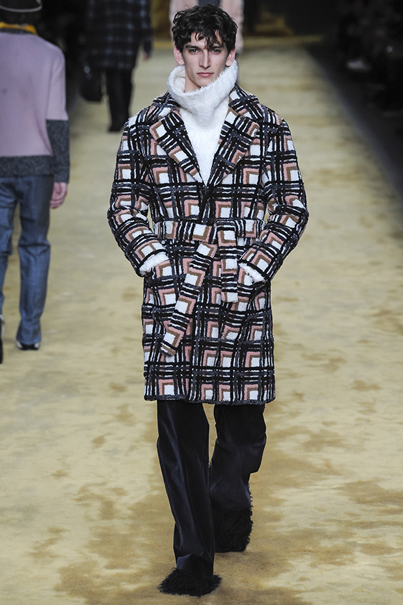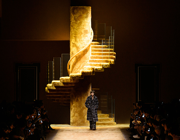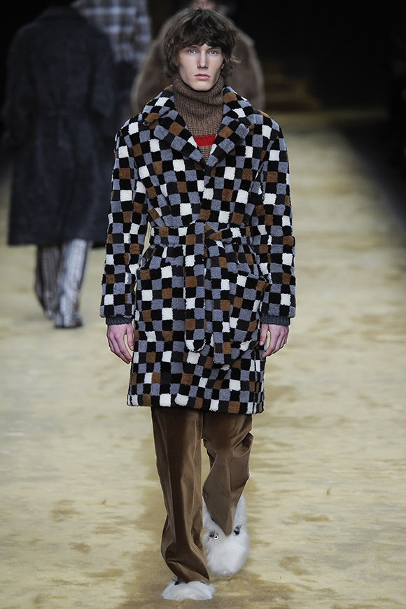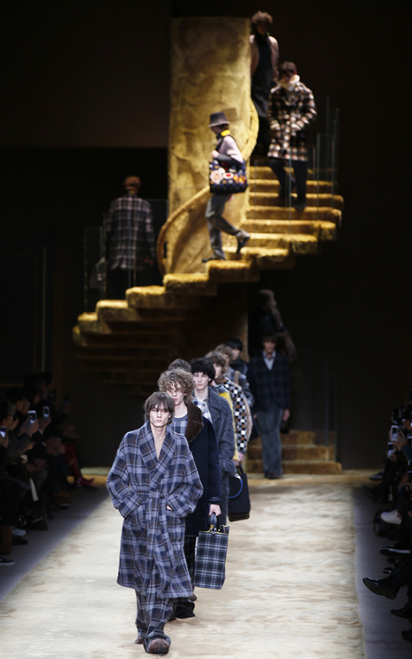 Fendi 似乎在验证睡衣继续流行的道理。小鲜肉推门而入,晃荡地走下旋梯,步入秀场,本季的发布会就这样在宅男公寓里开始了。