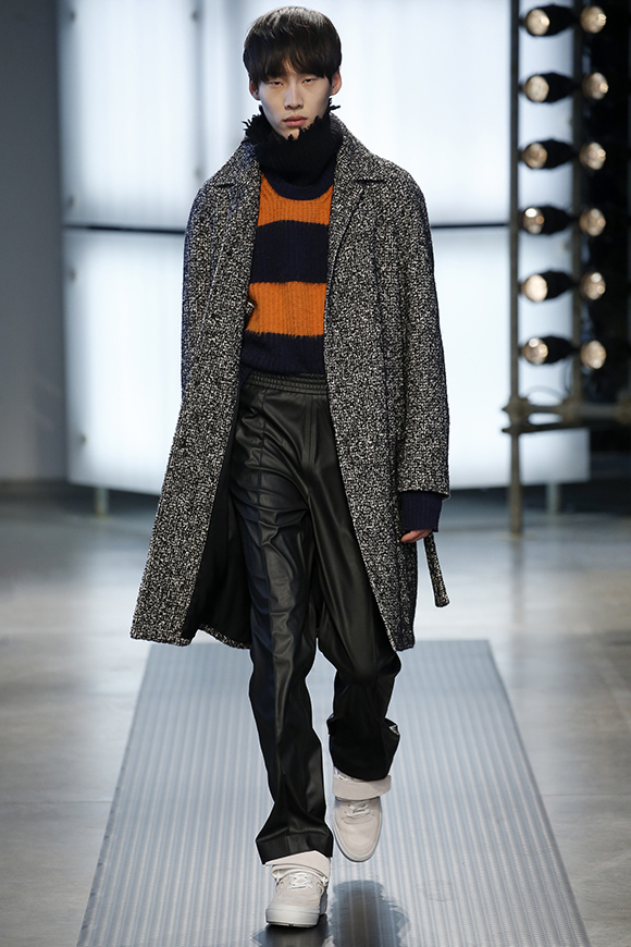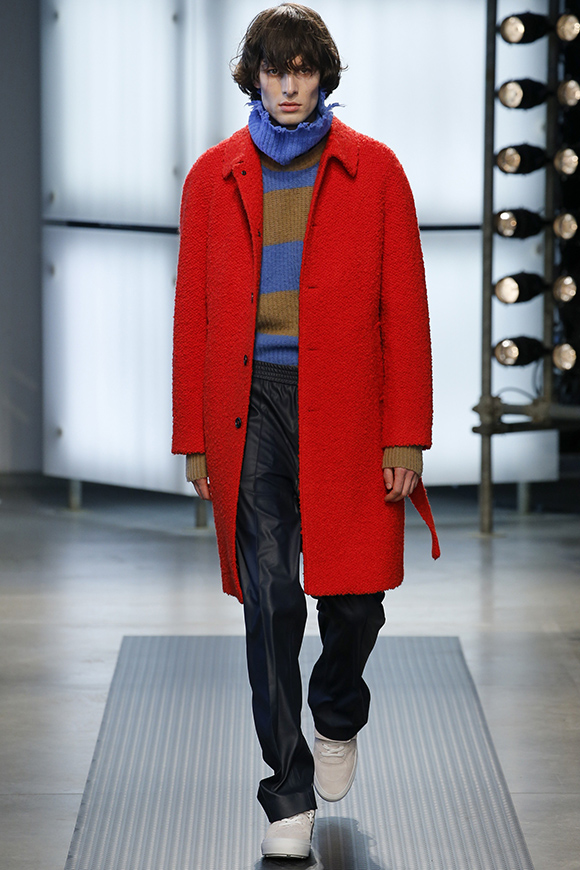 最为本片提到的三个品牌里年纪最小的 MSGM ,它依然握着几何的主旋律。红、粉、橙的鲜亮色调被图形化切割、打破、舒缓并杂糅到了每一款大衣的剪裁里面。不得不承认,MSGM 又一次代言了年轻的艺术。