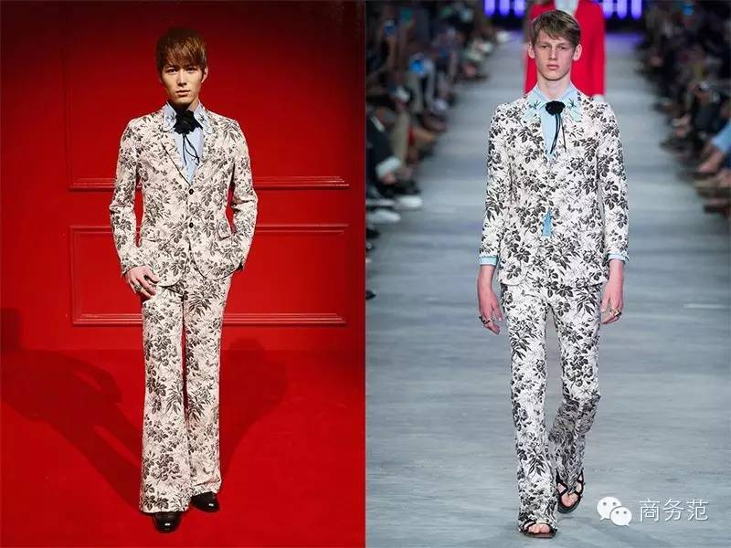 2号选手陈学冬范主就更别提了。印花西装被他穿出了墙纸即视感,花朵领结还系得这么紧,感觉快窒息了(虽然陈学冬的确一脸“我快喘不过气了”)喇叭裤在他身上显得娘之又娘,真的,范主整个人都不能好了。虽然陈学冬也当过模特,但和右边一比,超模野模什么的,不用范主说了吧……