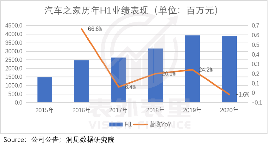 从下图的营收情况可以看到,在2020H1之前的半年度对比中,汽车之家的收入规模一直保持正向增长,2020H1的收入却出现同比下降,明显受到了疫情对出行领域的限制影响。