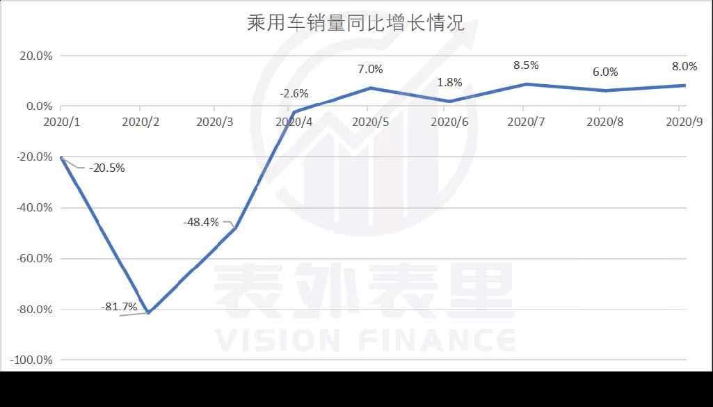 从单月数据来看,今年5月份开始,汽车的销量已连续5个月实现正增长。但由于疫情的原因造成一季度汽车需求被积压,在疫情得到控制后才逐渐释放。