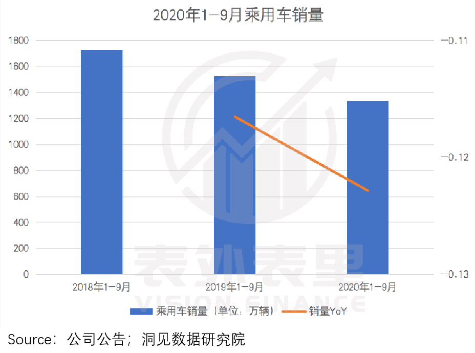 今年1-9月,乘用车整体的销量跌幅为12.4%左右,而2019年1-9月的销量跌幅为11.7%,降幅从二季度的22.4%持续收窄与去年接近,没有表现出扩大的趋势。