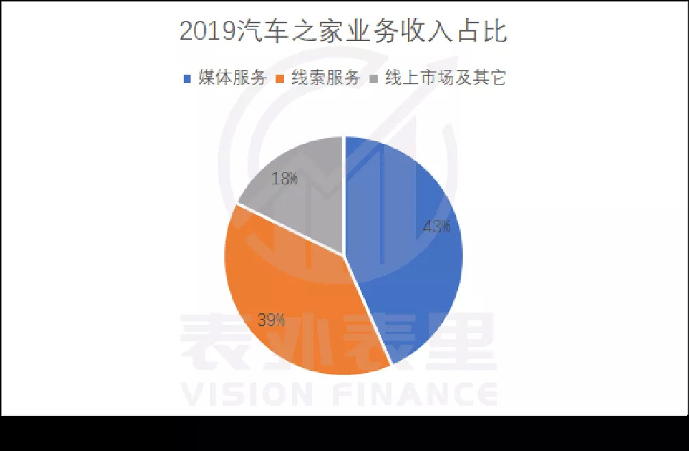 汽车之家是一家寄生于车企的汽车行业垂直信息平台,甚至被称为“车托之家”。可以看到,媒体业务和线索服务是其核心业务,在2019年分别占总营收的43%和39%,累计占比超过80%。