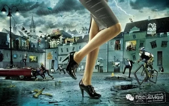 如何打造最具风格的广告,第一个想到的可能就是对比设计。就比如【上图】“Shoes so comfortable that everything else seems inconvenient”。.鞋子如此的舒适,以致于其他的出行方式看起来都那么难受。