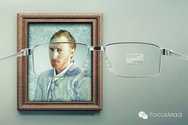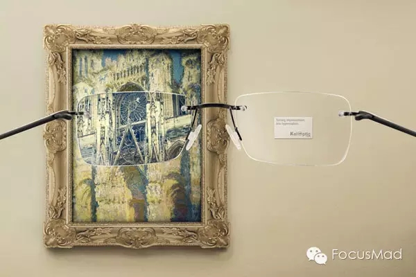广告采用对比的手法带你穿越两个艺术世界。戴上眼镜前,你看到的是印象主义,而戴上KelOptic眼镜后,则让你体验到超现实主义。