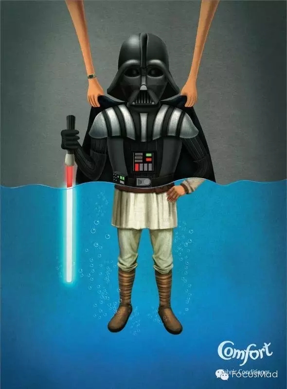 即便是亦正亦邪的星球大战黑武士、惨绝人寰的纳碎分子、狡猾阴险的狼外婆,只要在金纺中扭一扭、泡一泡(不好意思打错了,这不是奥利奥),他们都会变得体贴、温柔。而这个系列广告的出彩之处还在于色彩运用上的强烈对比,使得视觉传达效果棒棒哒!