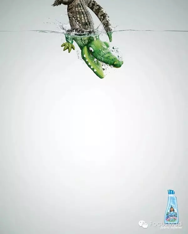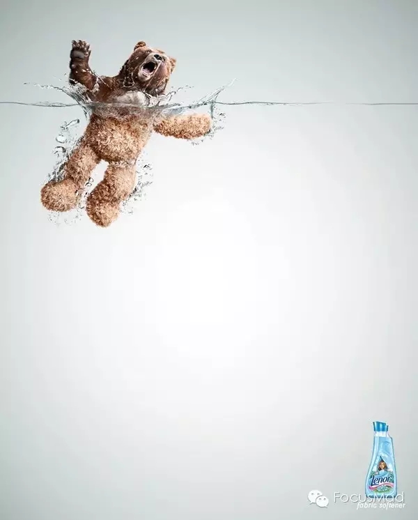 和上面金纺广告创意的出发点一致,都在着力凸显产品的性能。鳄鱼、大象、熊大(熊二在洗衣服)、金刚(博朗剃须刀刚出镜,又来了)泡到水里立刻被溶解成超萌的毛绒玩具,通过对比,产品诉求也是一眼明了。