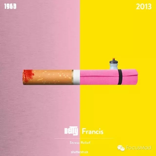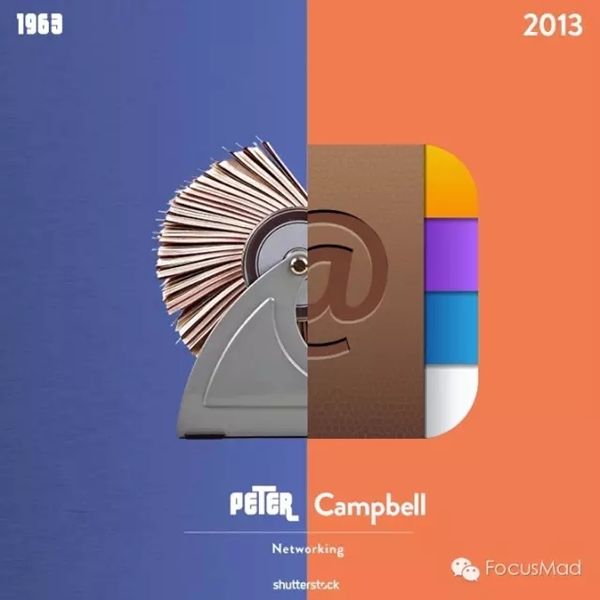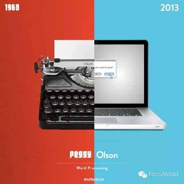 设计师将剧中60年代的物品,通过对比转换成与之对应的现代化物品,展现了时代的变迁,相信广告人应该深有感触吧!