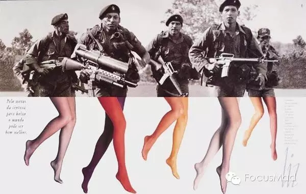 不知道这个创(dou)意(bi)十足的丝袜广告你见过没?广告通过上下分割在色彩上将黑白与彩色进行融合,同时又将经典的复古与现代的时尚性感相对比。无论怎么看,再正式严肃性的场景人物都无法逃脱LIZ丝袜的完美塑型、暧昧与性感。
