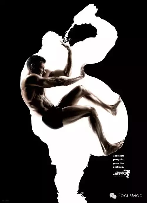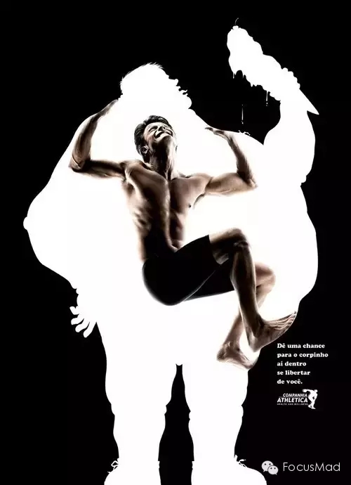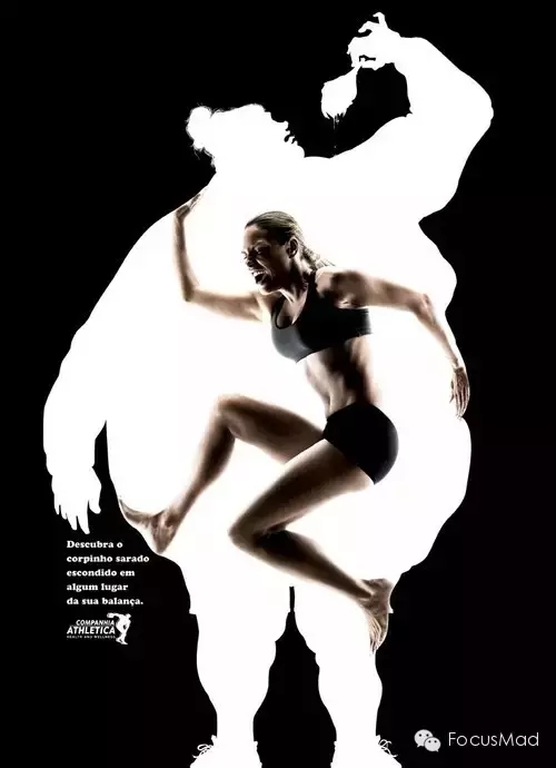 别再为肥胖而烦恼?加入Athletica健身俱乐部帮你保持或实现完美身材。广告通过胖和瘦这一反向对比(反向对比又称为“反义词对比”,如高矮、胖瘦、长短、好坏、优劣、强弱等),生动形像地向消费者展现出健身俱乐部的优势。