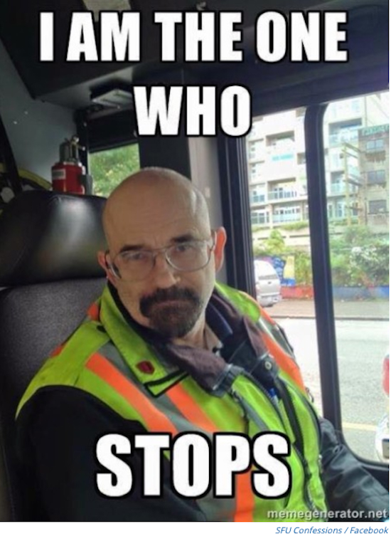 这位名叫Bill Laird的普通大叔,是135线路公车的司机,每天往返于温哥华downtown和SFU Burnaby校区之间。原本平静的生活自从他的照片被一个SFU的脸书页面发上网后就被打破了。。。因为长得跟老白太像,他的照片在网上被粉丝疯转,更惨沦为表情包素材。根据SFU校报The Peak的报道,他至今已经有了无数跟老白有关的外号,虽然大家都知道他温厚的性格跟剧中角色并没有任何相像的地方。