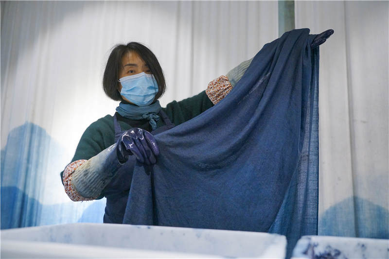 工人展示草木染(刘建维 摄)