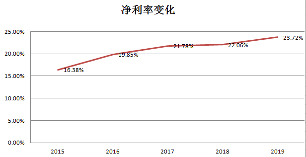 不只是绝对盈利规模在增加,艾迪精密的利润率也在逐年提升,2015-2019年,公司的净利润率分别为16.38%、19.85%、21.78%、22.06%、23.72%,在毛利率没有大幅改观的背景下,反应出其良好的成本控制水准。