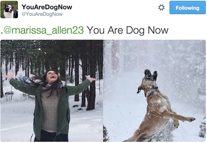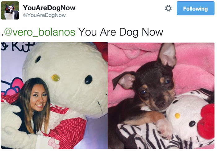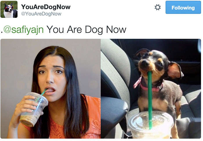 最近,一个名叫“You are dog now”的Twitter账号一夜爆红,而它的唯一技能就是……把你变成狗。上传一张你的自拍并艾特该账号,你就会得到一张跟你长得一毛一样的狗。下面是作品赏析时间。