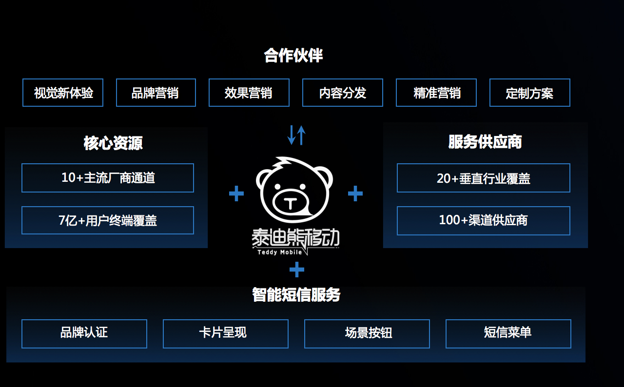 成立于2014年的泰迪熊移动就是一家提供智慧通讯服务的公司。除了短信,围绕手机厂商生态,泰迪熊移动还提供基于大数据的号码识别、场景消息等服务。据官方网站的信息,目前其客户包括vivo、 OPPO、京东、淘宝、建设银行以及三大运营商等国内上百家企业。