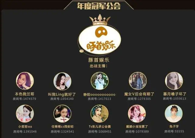 豚首是一家非常积极求变的公会,作为陌陌的核心公会,豚首在秀场上有很成熟的经验,同时积极开发斗鱼等游戏直播平台,刚进入斗鱼就签约了一大批斗鱼知名秀场主播;也是最早开始进军淘宝直播,做直播电商的公会之一,后来签约战队,战队的成绩也很好,成立不久就获得WGC,TGA,KOC,QGC四大次级联赛大满贯。