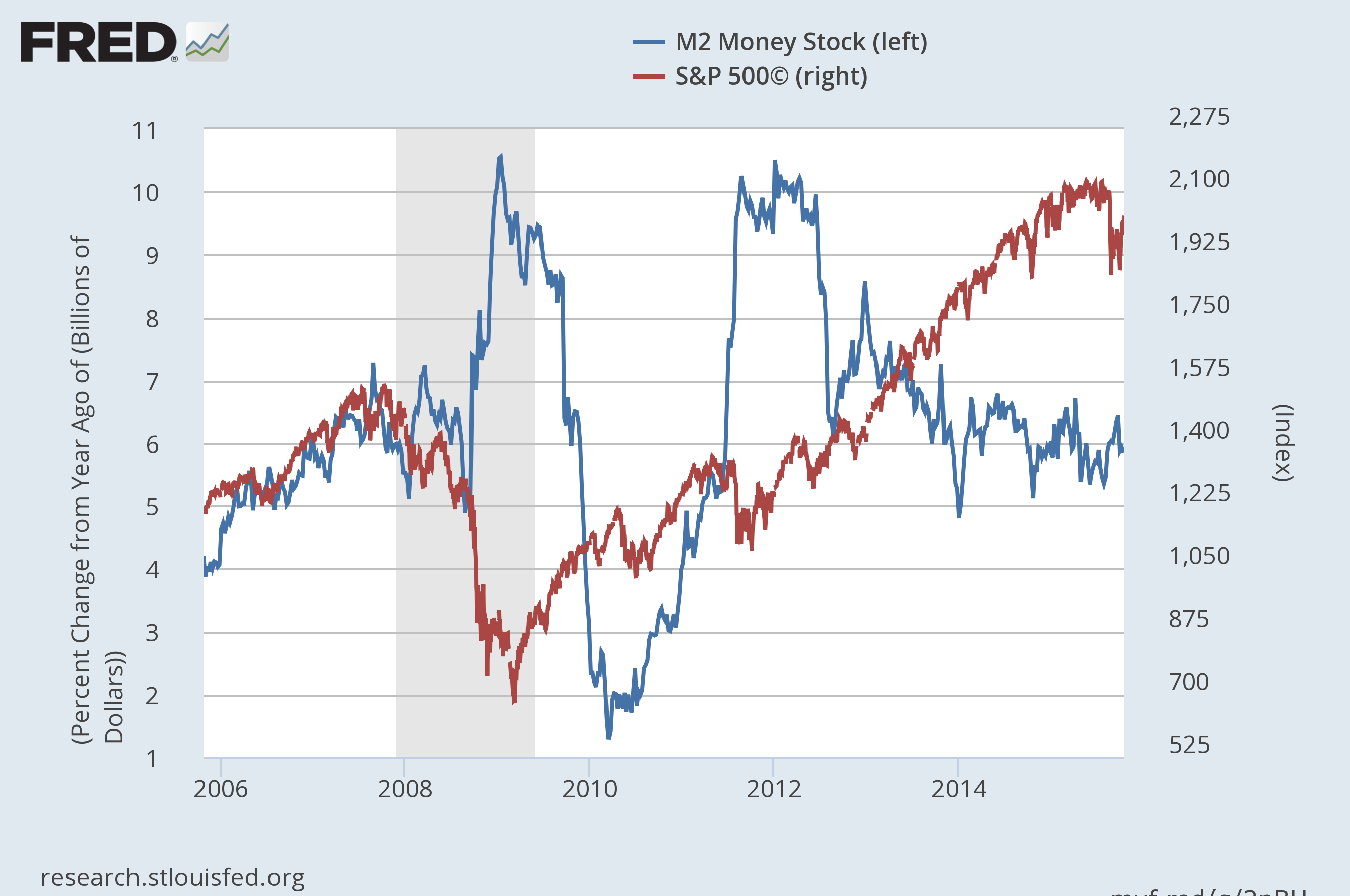 图3,美国M2同比增速与S&P 500指数叠加图,数据来源:美联储