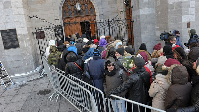 在本周二前往蒙特利尔圣母大教堂时,席琳·迪翁加入到了雷尼·安杰利粉丝行列中,与远道而来的支持者们一起送丈夫最后一程。