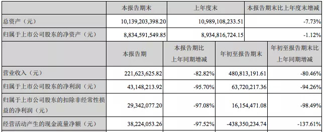 光线传媒今年1-9月实现营业收入为4.81亿元,同比下降80.46%;净利润6372.02万元,同比下降94.26%;扣除非经常性损益后的净利润更是下滑98.49%。
