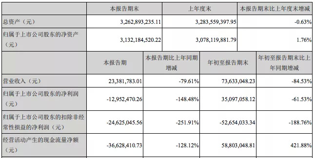 第三季度,华录百纳实现营业收入2338.18万元,同比下降79.61%;归属于上市公司股东的净利润为亏损1295.25万元;归属于上市公司股东的扣除非经常性损益的净利润为亏损2462.5万元。