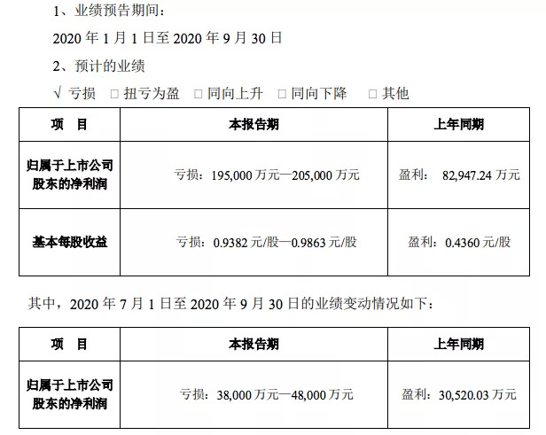 万达电影此前发布业绩预告,预计前三季度净亏损19.5亿-20.5亿元。