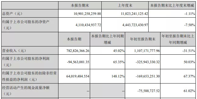 华谊兄弟今年1-9月公司营业收入11.07亿元,同比减少31.51%;归属于上市公司股东的净利润为亏损3.26亿元。