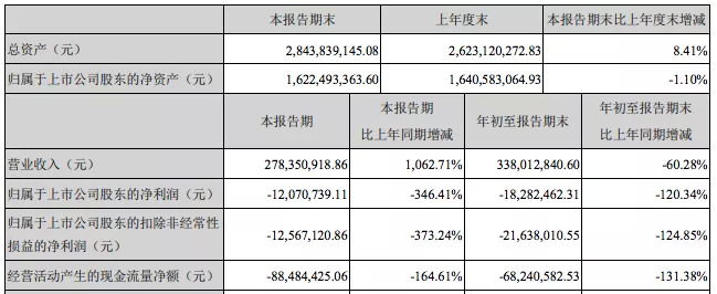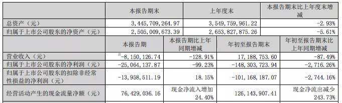第三季度,华录百纳实现营业收入2338.18万元,同比下降79.61%;归属于上市公司股东的净利润为亏损1295.25万元;归属于上市公司股东的扣除非经常性损益的净利润为亏损2462.5万元。