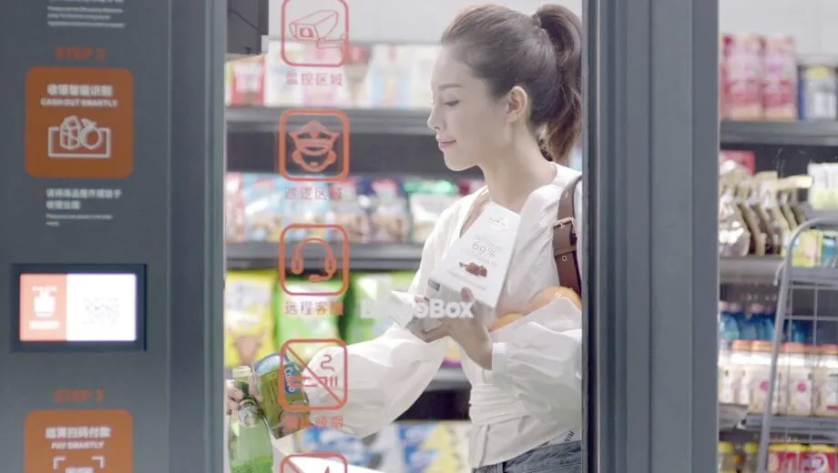 顾客购物时,只需要在进门时刷一次二维码,拿上想要购买的商品,然后走出商店即可,整套体验十分流畅,中间没有任何“收银”动作。