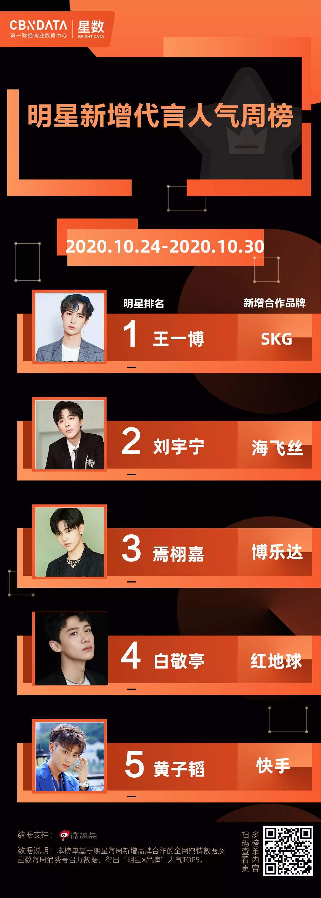 CBNData星数全新发布“明星新增代言人气周榜”及“明星代言周报”,聚焦美妆个护、食品饮料、家电3C、服饰鞋包、日化家清五大品类。