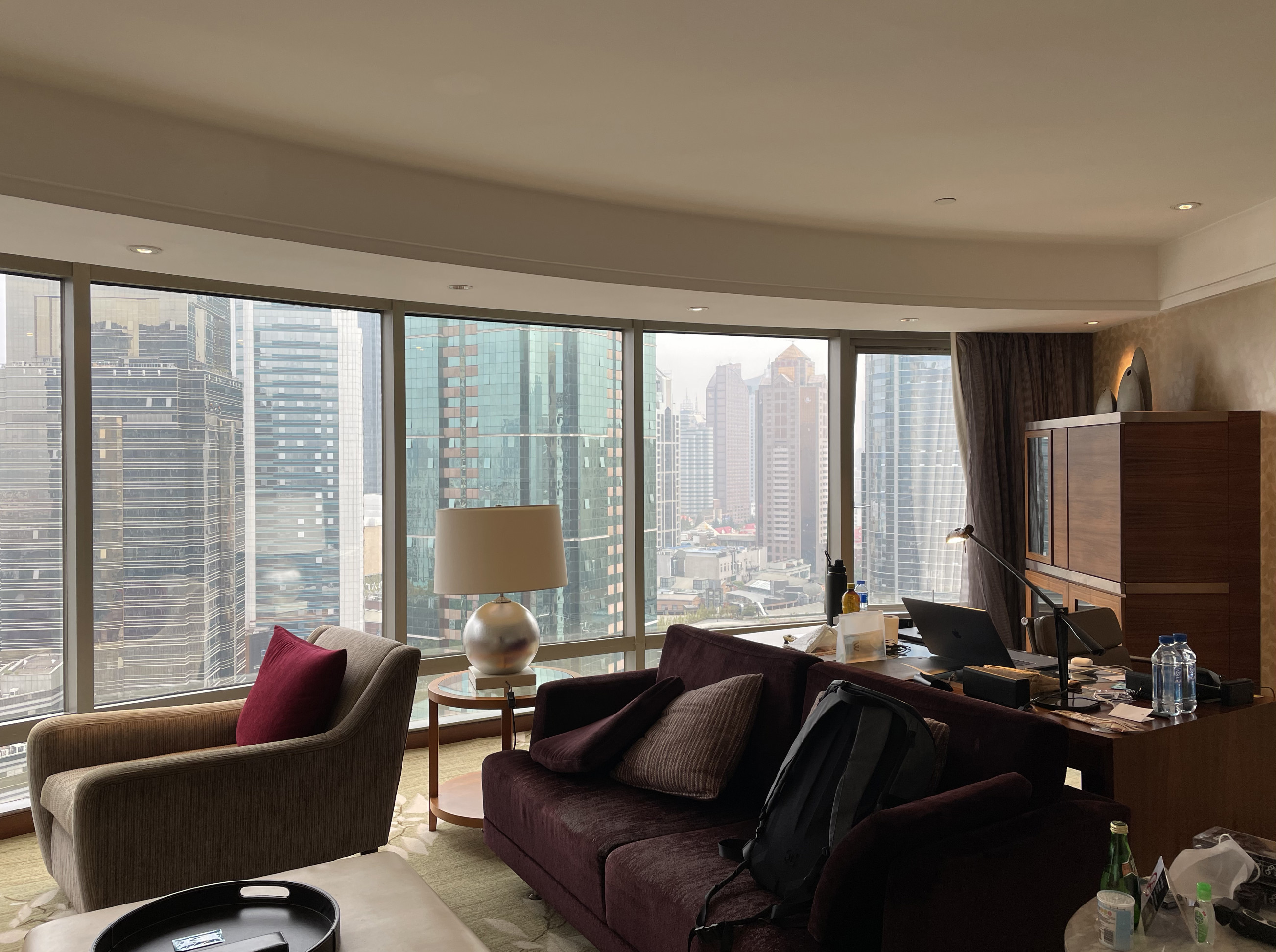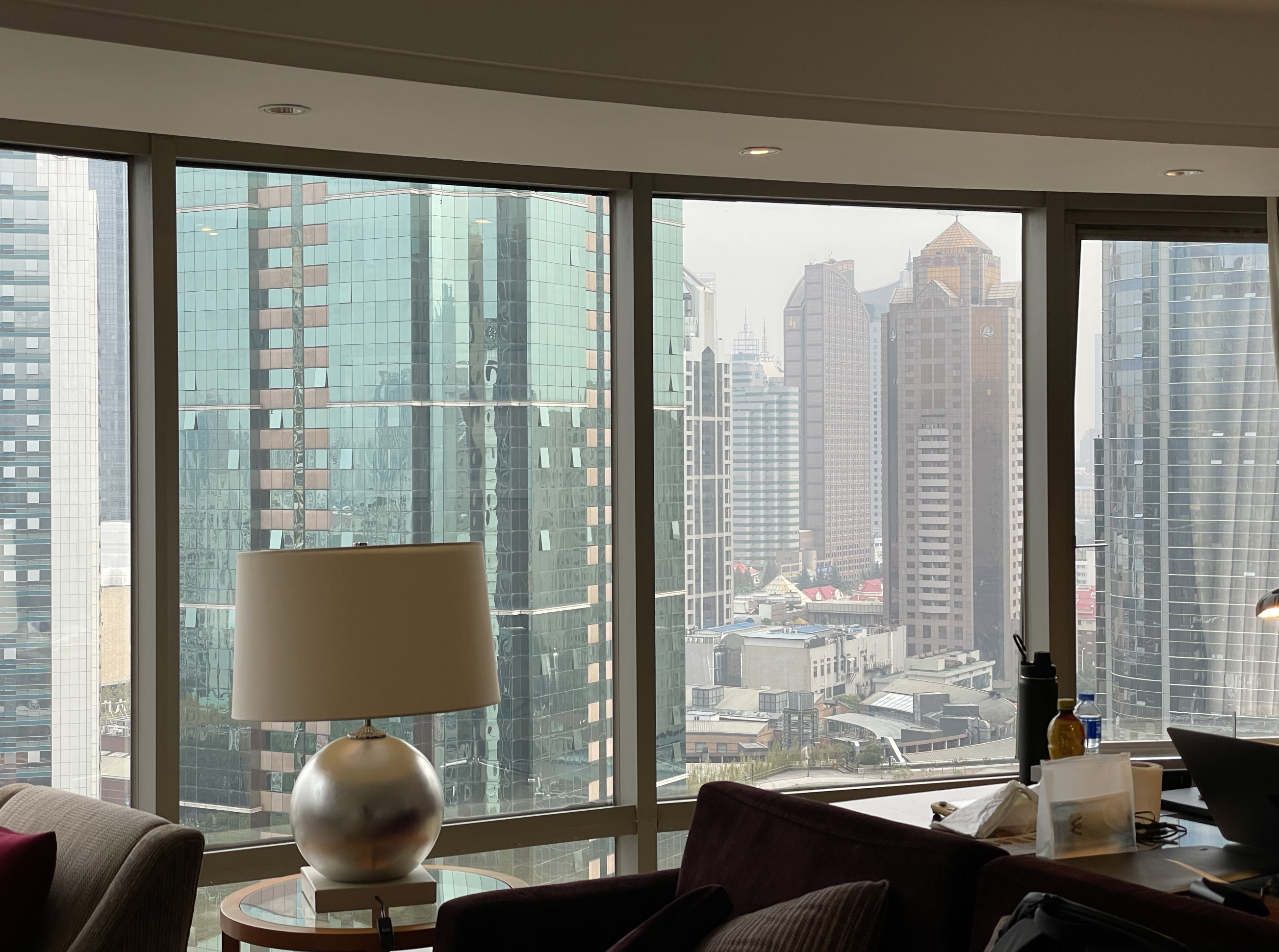 手持iPhone 12,在候车大厅有5G,高铁上有5G,办公室则是4G,酒店也能接收到5G信号。